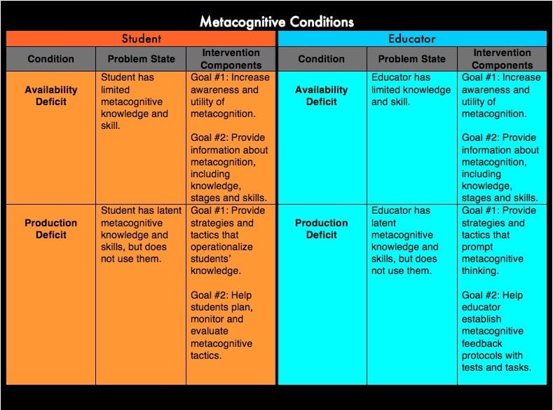 Understanding students’ metacognitive conditions enables tutors to tailor their interventions to the students’ needs. The image below simply portrays the two conditions in which students and educators fall.