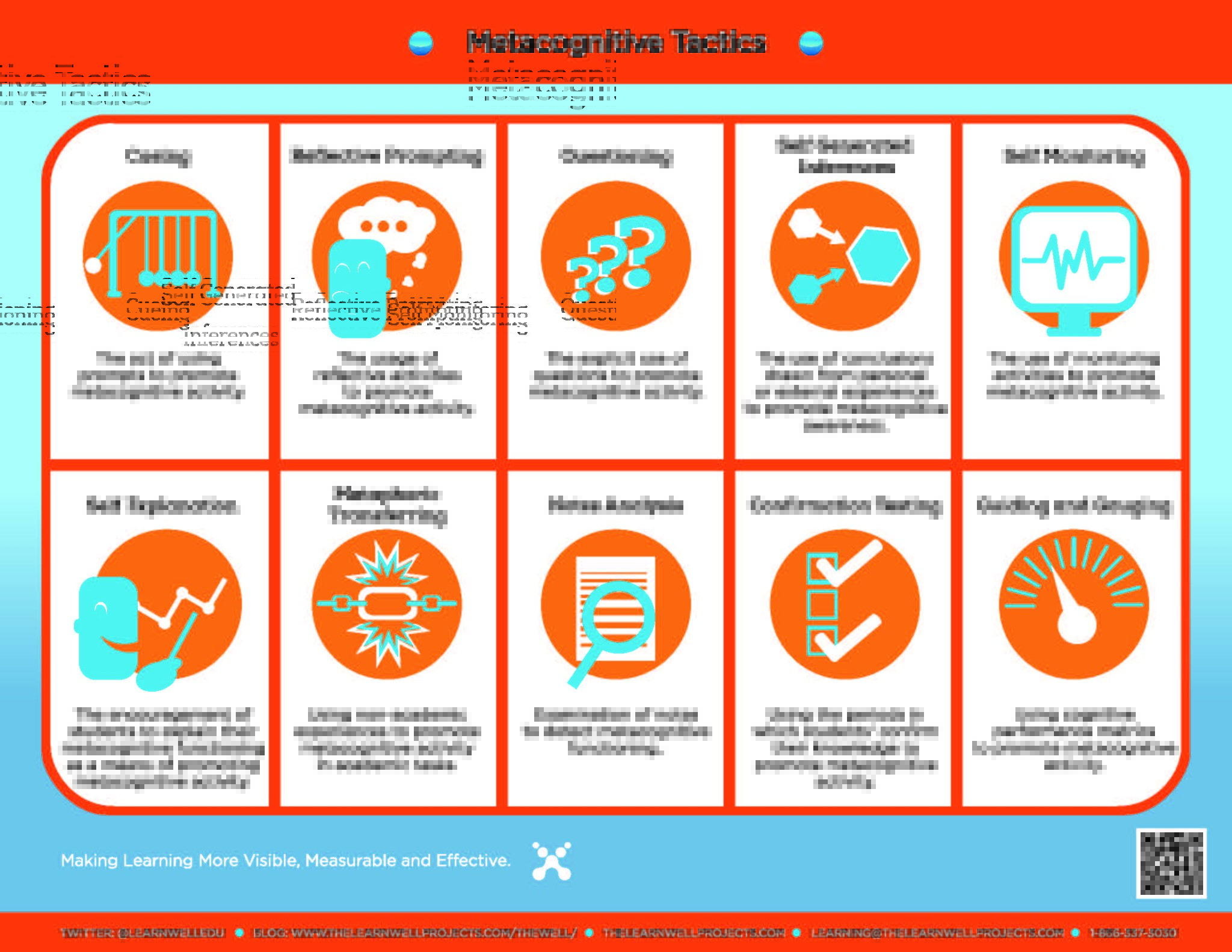 The image below features some research-based metacognitive tactics. These can be incorporated into any discipline, used with all content, and seamlessly integrated into any instructional preference.