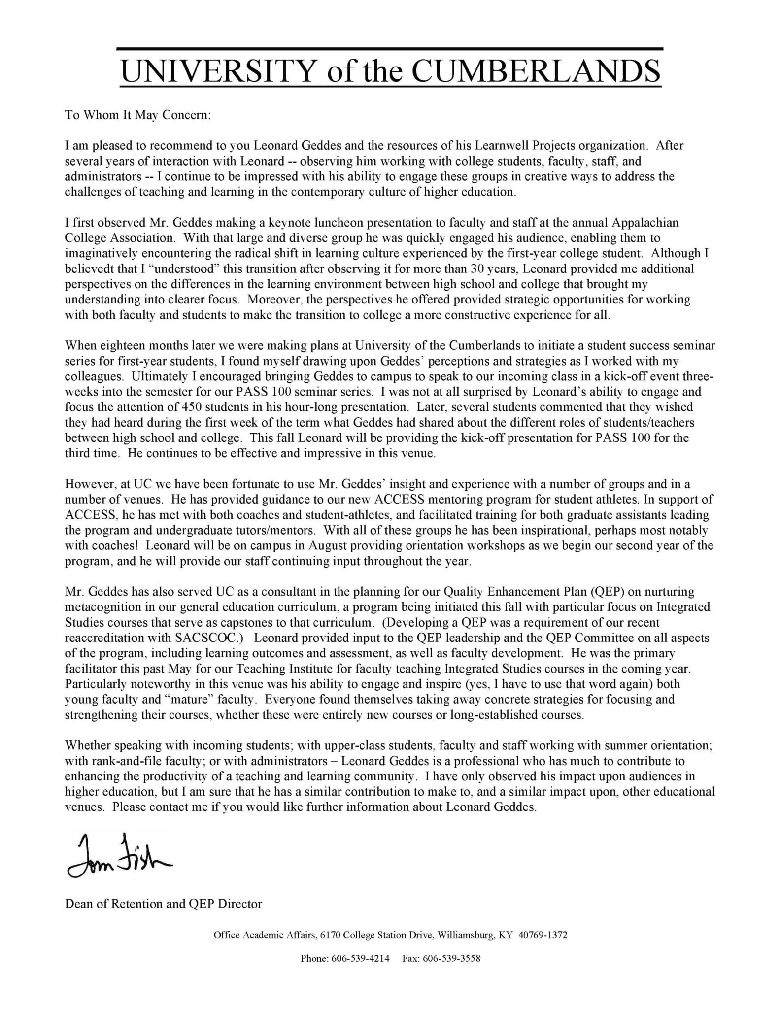 Served as the Quality Enhancement Plan (QEP) consultant for the SACSCOC accrediting body, working with the student success center to develop a metacognitive plan that empowered learning assistants to enhance student learning and performance. Additionally, implemented a metacognitive data program (Trench Data) that identified and addressed key challenges in the learning environment.