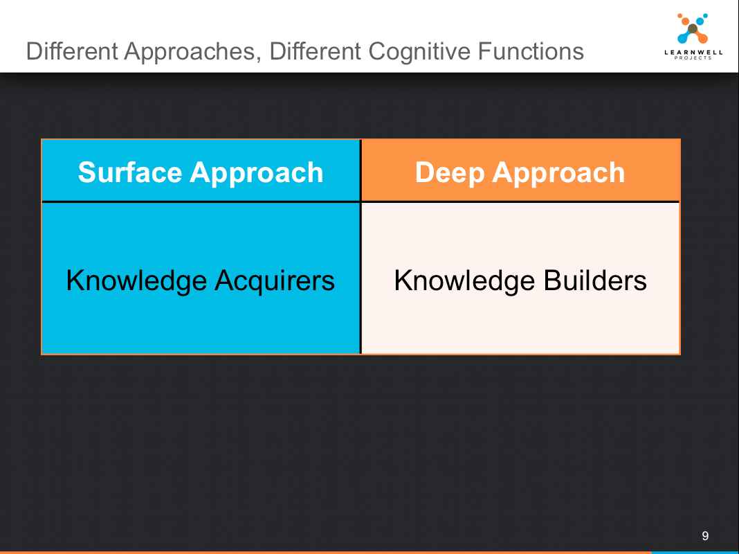 - The approach that students operate within largely dictates how they interact in learning environments and ultimately what they learn.