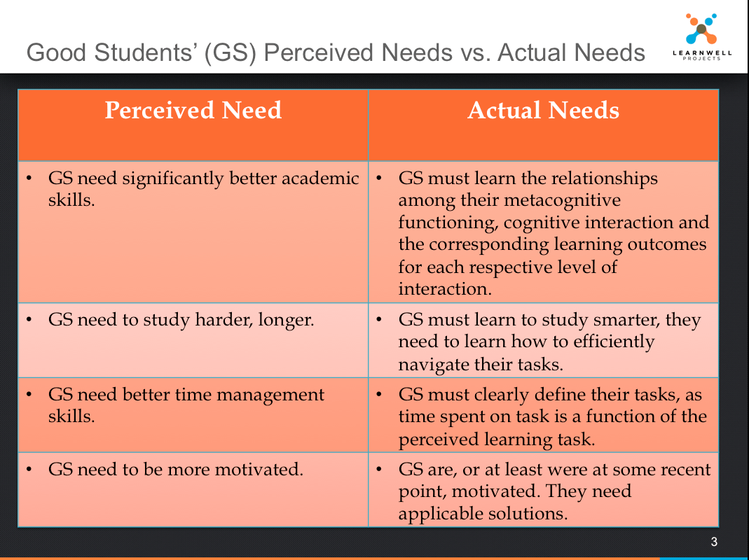 - The single goal when helping good students is to increase their metacognitive awareness and to assist them in effectively aligning their metacognitive and cognitive functioning to task outcomes.