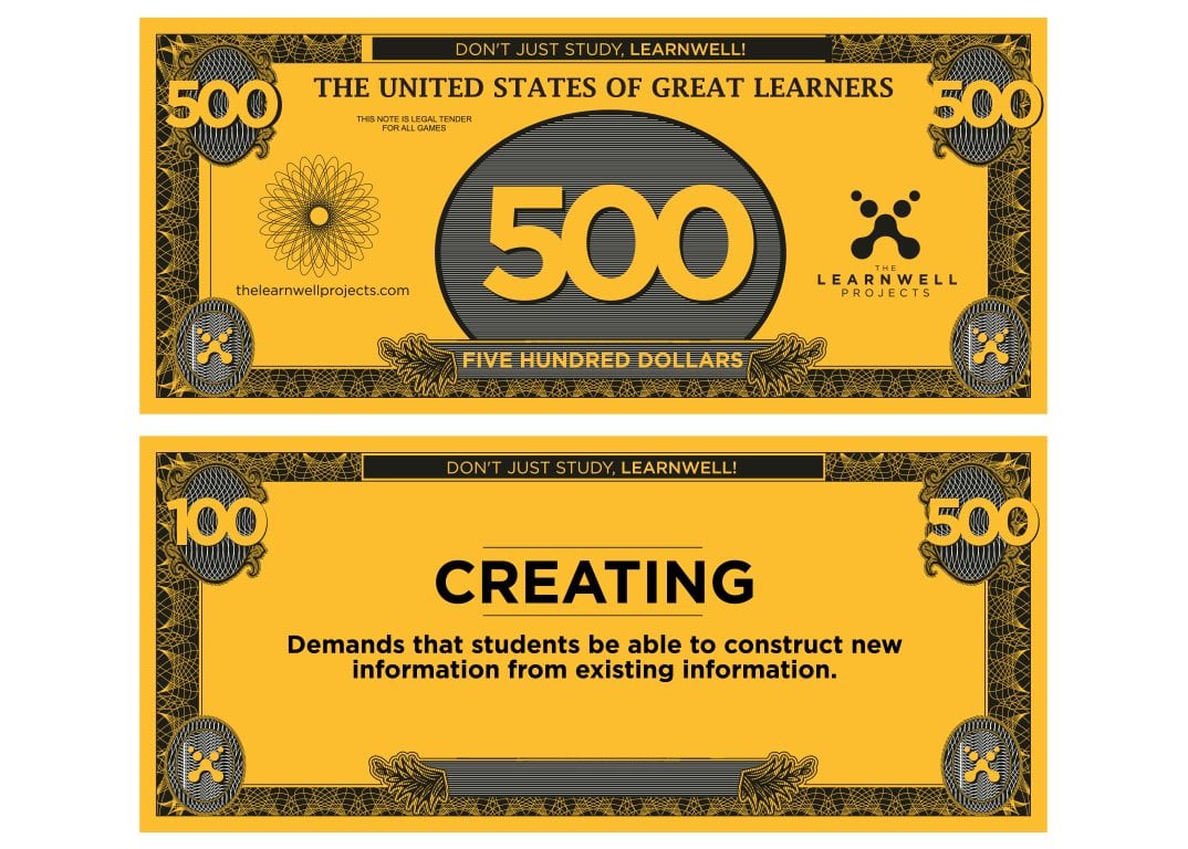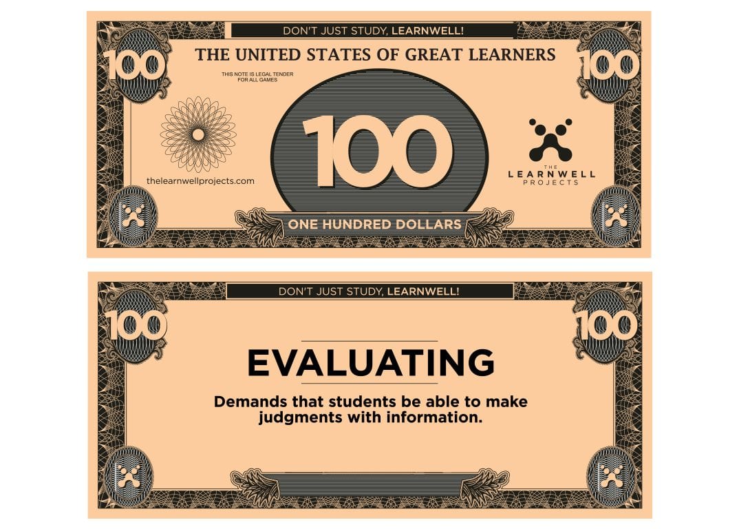 Once students have developed a mental framework for deep thinking, we can have fun reinforcing their new intellectual abilities. Recent neuroeconomics studies show that the brain codes value when selecting intellectual behaviors. The Outcome Valuation Kit is used to associate values to each level of thinking as students interact with content. Educators can use the monetary valuation system to draw out higher order thinking skills within students.
